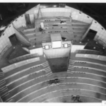 The seats, formerly arranged in a circular pattern, are now placed in straight rows staggered in height within a sloping dome.